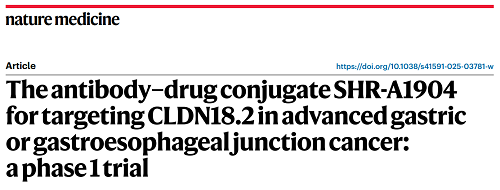 asiagame医药CLDN18.2 ADC创新药SHR-A1904治疗胃癌临床研究结果荣登Nature Medicine